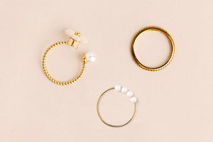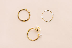 And when it’s time to dress things up, Lumina brings just the right amount of elegance with its four smooth pearls — perfect solo or stacked, depending on the outfit and occasion.
